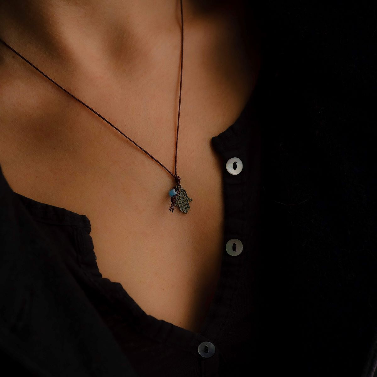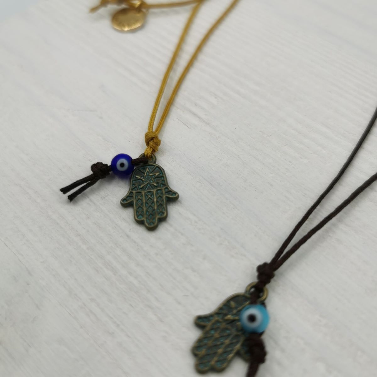 Colar Hamsá e Olho Turco 12,00 € Desconto de %. IVA incluído. Partilhar Cor Fio castanho Fio amarelo Comprar Contactar - Colar Hamsá e Olho Turco - Amarelo torrado Fio Ajustável. Comprimento máximo aprox. 64cm + Hamsá, olho e nó 2cm . - Colar Hamsá e Olho Turco - Castanho escuro Fio Ajustável. Comprimento máximo aprox. 64cm + Hamsá, olho e nó 2cm . *Para mais informações, opções ou personalização fale connosco através do Instagram na nossa página @yasmin.lisbon* Marca Yasmin.Lisbon