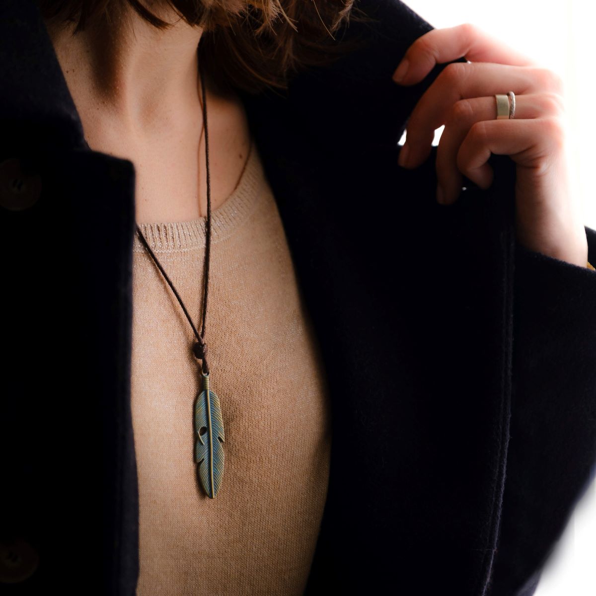 Colar Pena bronze pátina 11,00 € Desconto de %. IVA incluído. Partilhar Comprar Contactar - Colar Pena em fio de algodão e Bronze pátina Fio Ajustável. Comprimento máximo aprox. 63cm + Pena e nó 7,5cm *Para mais informações, opções ou personalização fale connosco através do Instagram na nossa página @yasmin.lisbon* Marca Yasmin.Lisbon