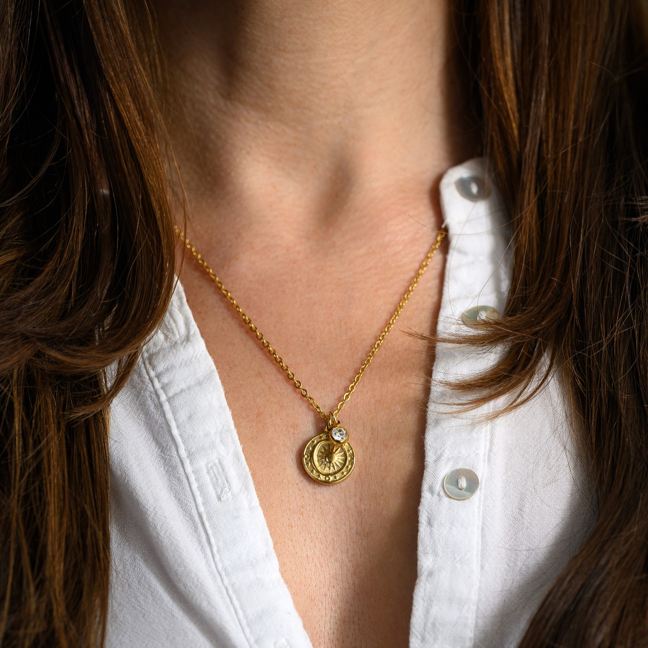 Colar SKY [Dourado] 19,50 € Desconto de %. IVA incluído. Partilhar O produto encontra-se sem stock. - Colar SKY em aço dourado Comprimento aprox. 43cm + extenção ajustável de 5cm + Coração 1,5cm Marca Yasmin.Lisbon