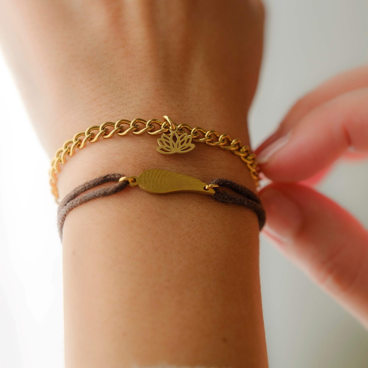 Pulseira Asa | Pulseira Corrente Aço Dourado (vendidas em separado) 11,00 € Desconto de %. IVA incluído. Partilhar Modelo Asa - aço prateado Asa - aço dourado Corrente Flor de Lotus (Tam.M) Comprar Contactar - Pulseira Asa em aço: Fio grosso de algodão com medalha Asa de aprox. 2,2cm + 0,5cm 2 argolas aço. Tamanho: Ajustável . - Pulseira Corrente com Flor de Lótus em aço dourado * Tamanho S – aprox. 17cm * Tamanho M – aprox. 18cm * Tamanho L – aprox. 20cm . *Para mais opções, personalização ou informações fale connosco através do Instagram na nossa página @yasmin.lisbon* Marca Yasmin.Lisbon