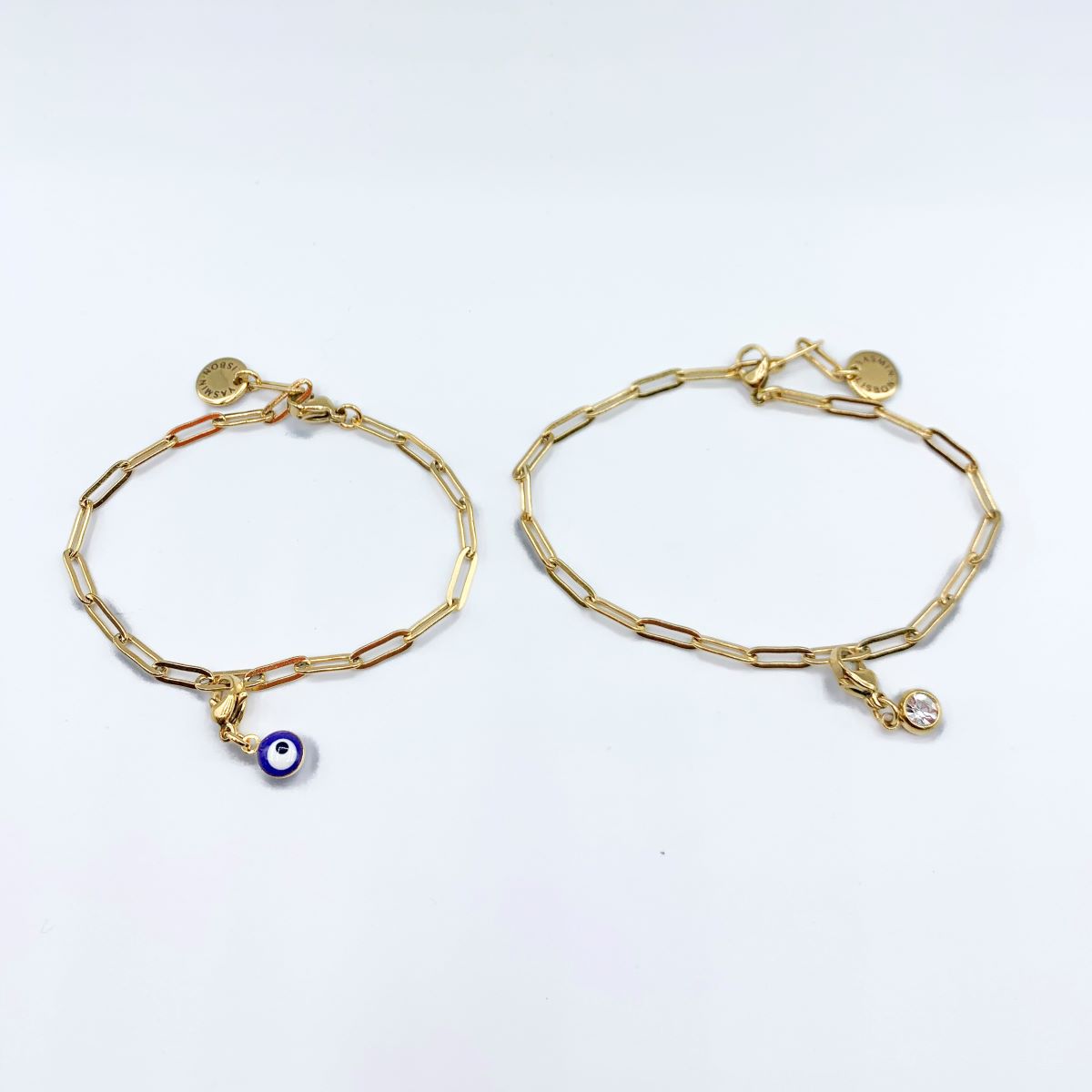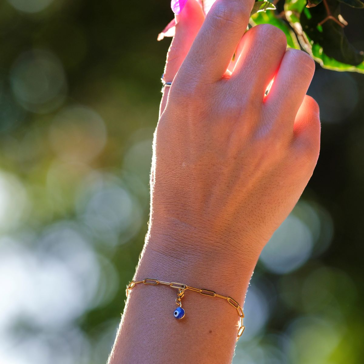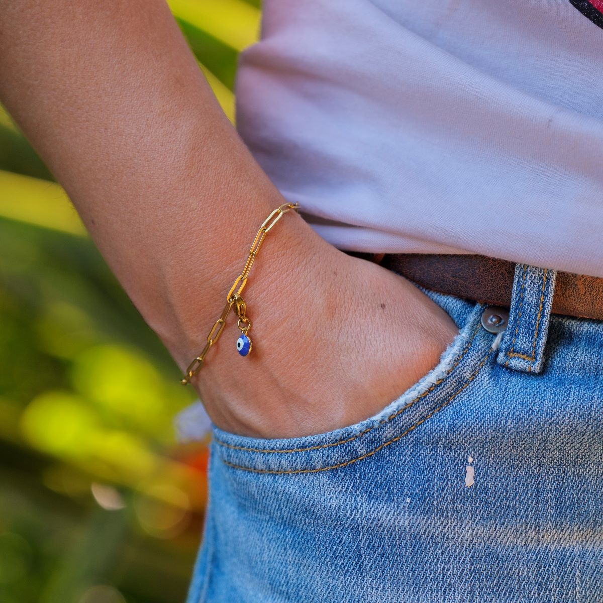 Pulseira corrente com pendente móvel dourada 12,50 € Desconto de %. IVA incluído. Partilhar Tamanho S/M M/L Pendente Olho Turco Ponto de Luz Comprar Contactar - Pulseira corrente com pendente móvel, em aço dourado. * Tamanho S/M – Aprox. 17cm máximo (ajustável para menor) * Tamanho M/L – Aprox. 20 cm máximo (ajustável para menor) . *Para mais opções, personalização ou informações fale connosco através do Instagram na nossa página @yasmin.lisbon* Marca Yasmin.Lisbon