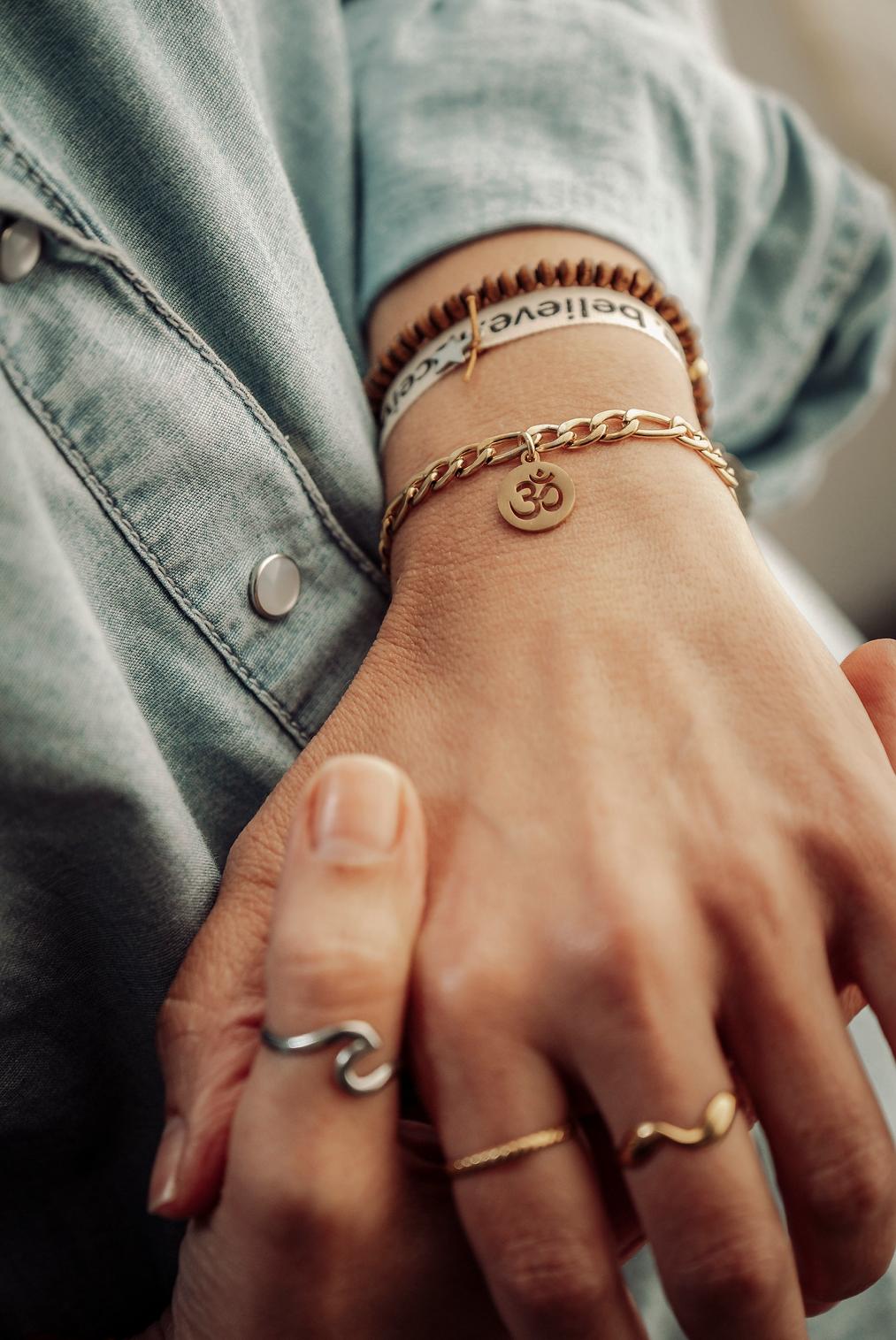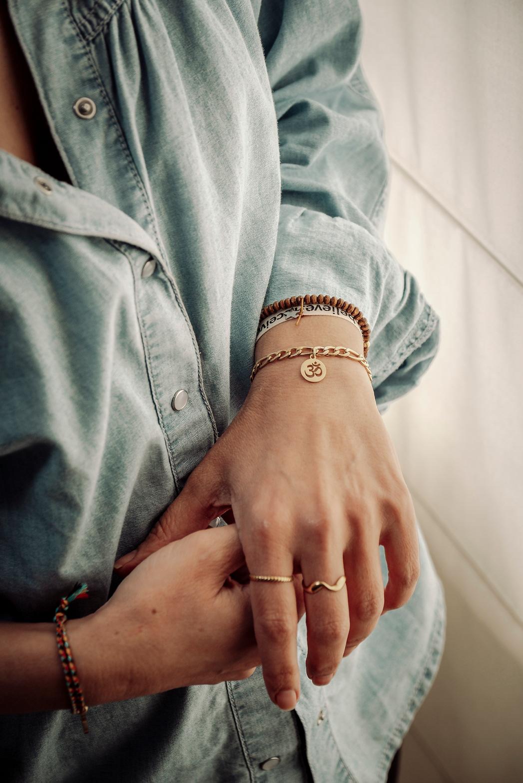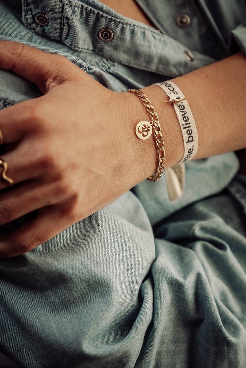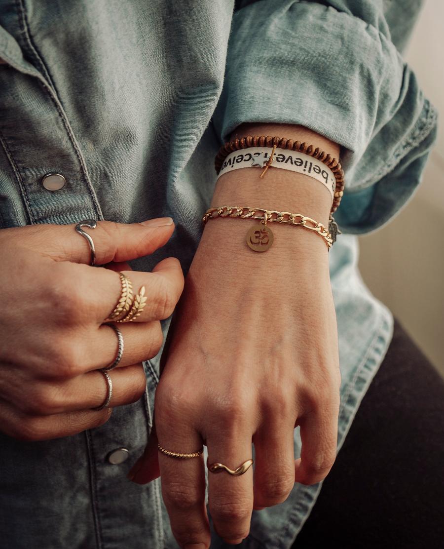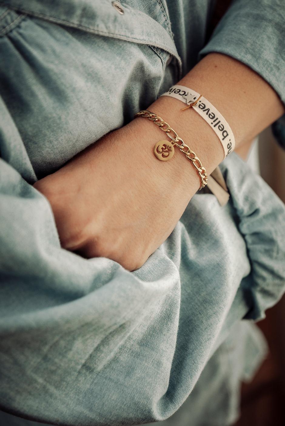 Pulseira Corrente OM 13,50 € Desconto de %. IVA incluído. Partilhar Tamanho S M L Comprar Contactar Pulseira Corrente OM em aço dourado * Tamanho S – Até 17cm * Tamanho M – Até 18,5cm * Tamanho L – Até 21cm [Ajustável para menor] . *Para mais opções, personalização ou informações fale connosco através do Instagram na nossa página @yasmin.lisbon* Marca Yasmin.Lisbon Características