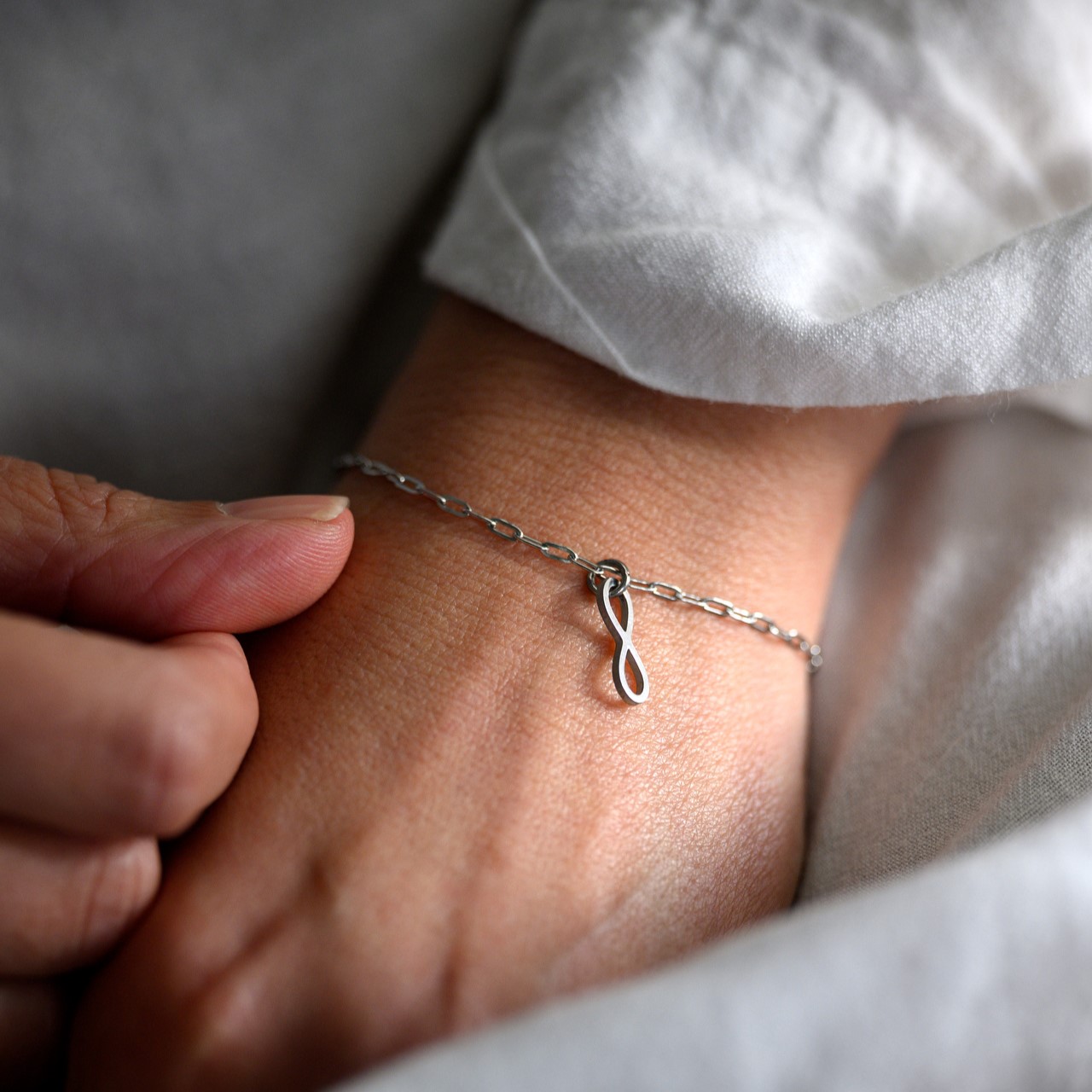 Pulseira infinity symbol [Prateada] 14,00 € Desconto de %. IVA incluído. Partilhar Comprar Contactar Pulseira corrente fina INFINITY SYMBOL em aço * Tamanho S/M – Aprox. 16,5cm + 2cm de extenção ajustável. (Comprimento mínimo 16,5cm / comprimento máximo 18,5cm) *Para mais opções, personalização ou informações fale connosco através do Instagram na nossa página @yasmin.lisbon* Marca Yasmin.Lisbon Características