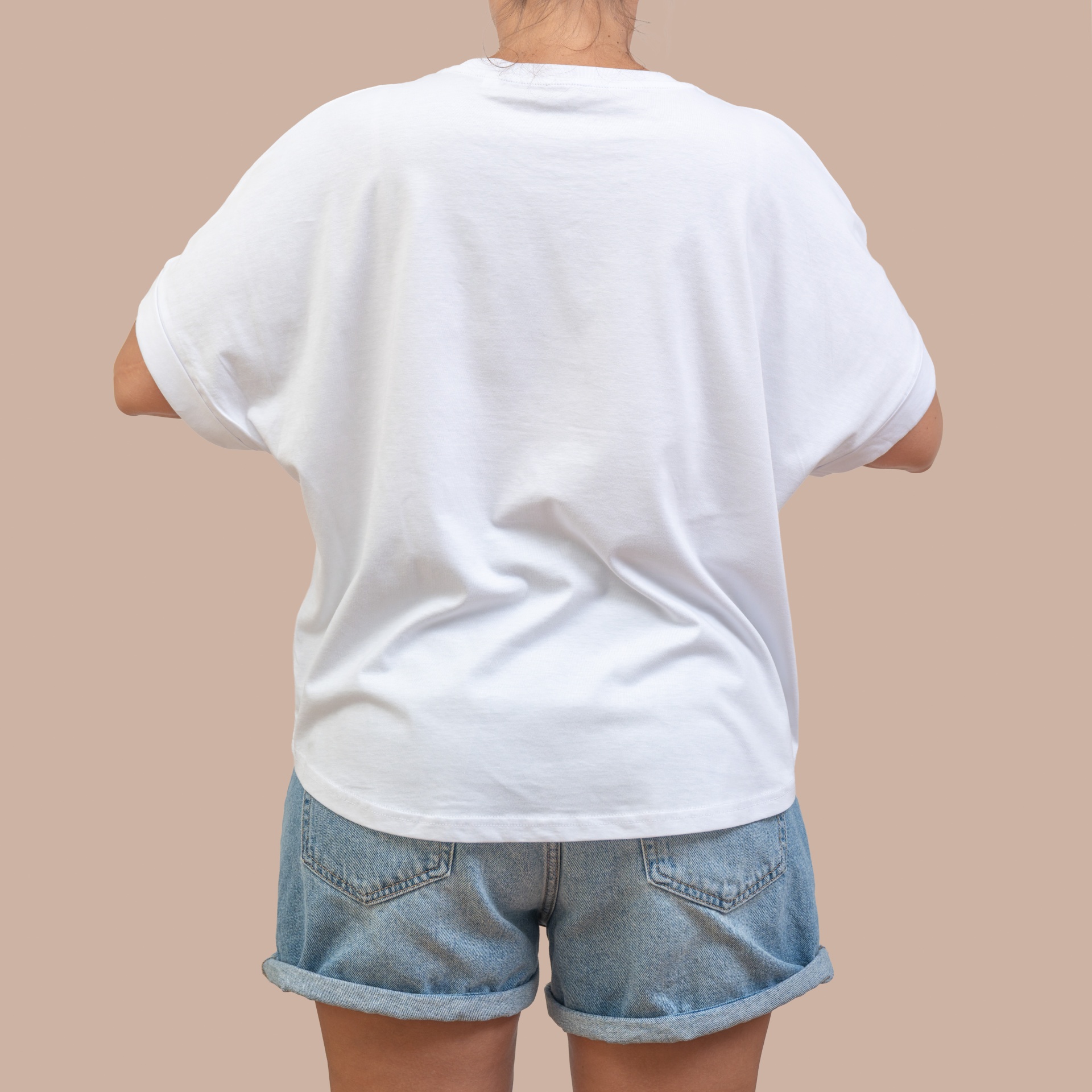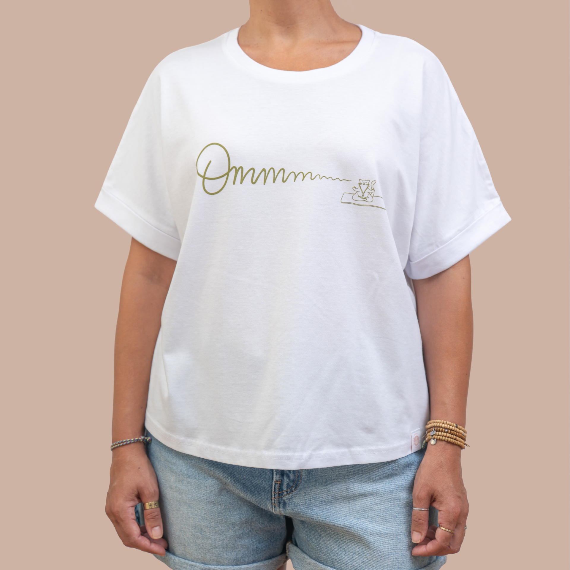 T-shirt OM [Inner Peace] Verde 35,00 € Desconto de %. IVA incluído. Partilhar O produto encontra-se sem stock. The universe breathes with you. Listen. ♥ T-shirt OM - Oversized rolled sleeve Composição: 100% Algodão - penteado Ring Spun Orgânico - 155 g/m². Manga Dolman, ampla e solta, com punho da manga dobrado com reforço. Gola canelada. Fita interior da gola traseira no mesmo tecido. Bainha arredondada com pesponto duplo largo (comprimento das costas maior que o da frente). Fit: Oversized. Nas fotos está a ser usado um tamanho S. Símbolo OM impresso atrás, no canto inferior direito. Marca Yasmin.Lisbon Características